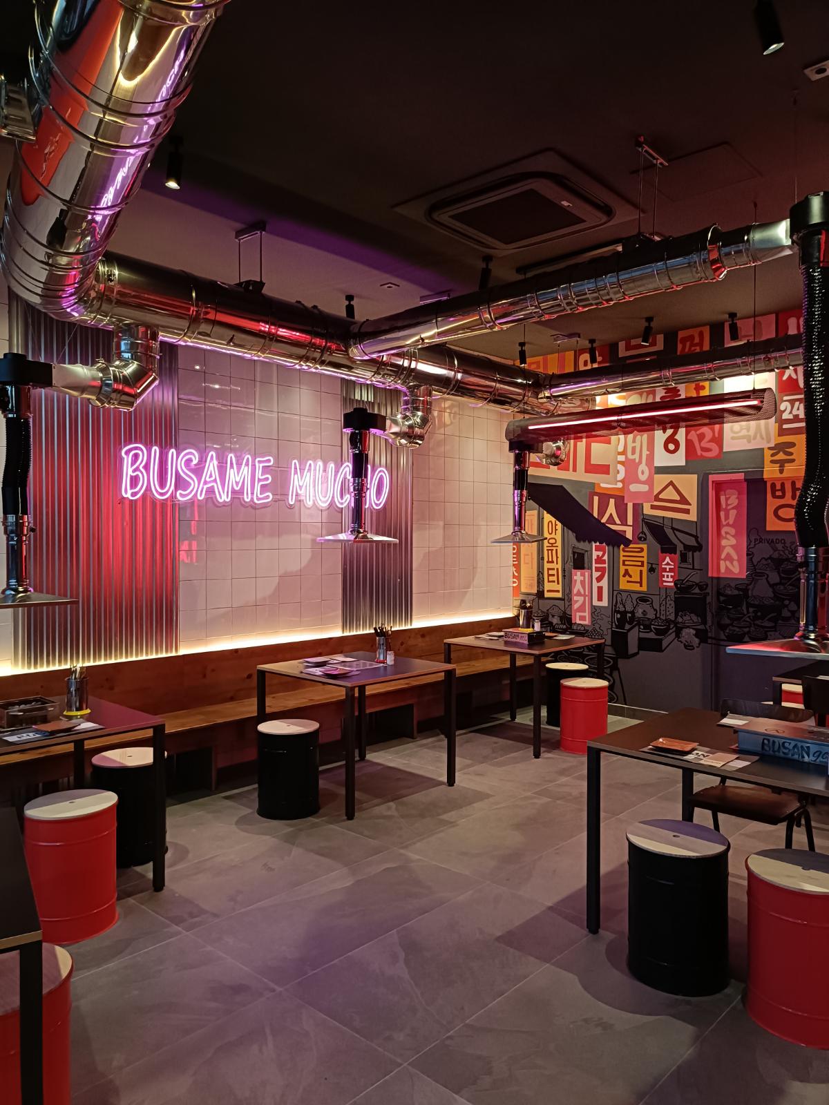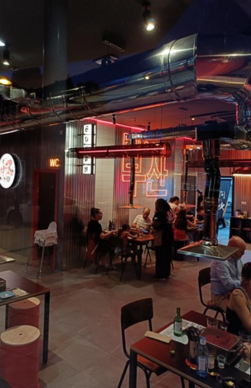 Busan GO! no es un restaurante coreano más. Se convierte en un escenario completo: humo delicado, un espacio ordenado y elegante, calor acogedor. Todo te invita a quedarte: iconografía coreana, molduras sutiles, acabados artesanales mínimos. Auténtico, cómodo y con estilo.